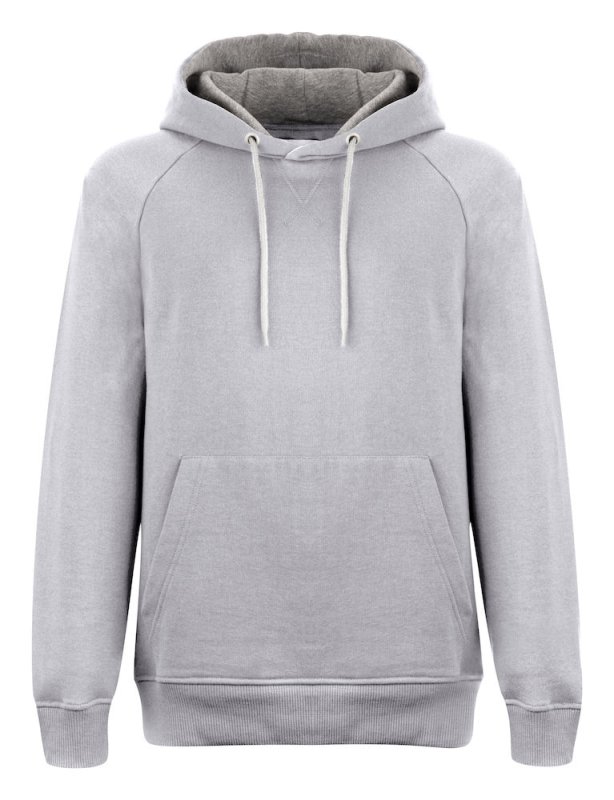 Hoodie with raglan sleeves and half-moon in the neck. Tone on tone drawstrings with rubber bullet point end. Kangaroo pocket on the front. Brushed on the inside. Ribbed ending at sleeves and bottom hem. Oeko-Tex 100, OCS & GRS certified. Colors: 120 grey melange, 600 navy, 704 moss green, 900 black New version 85% organic cotton, 15% recycled polyester, 300 g/m2 Old version 80% organic cotton, 20% recycled polyester, 300 g/m2 XS-XXL
