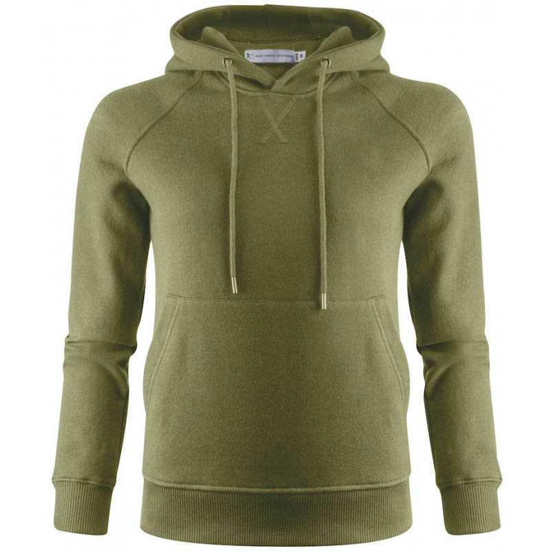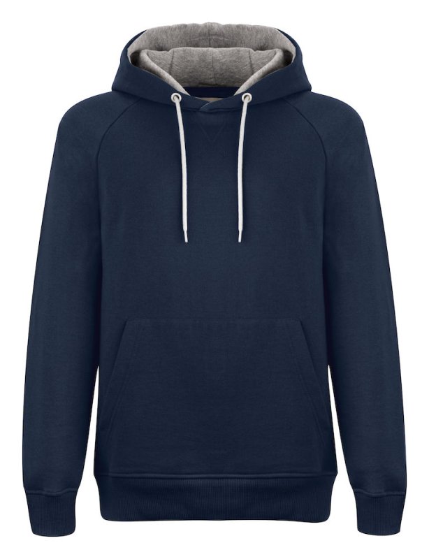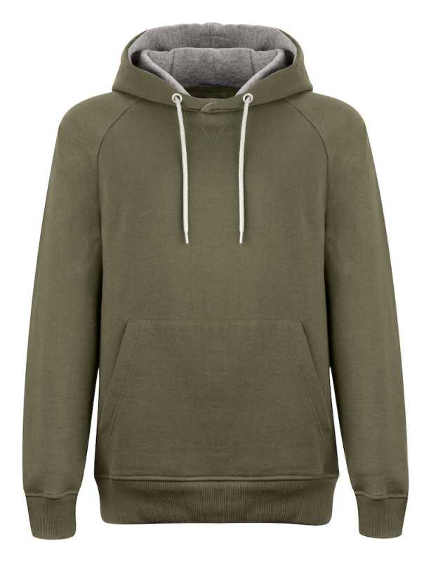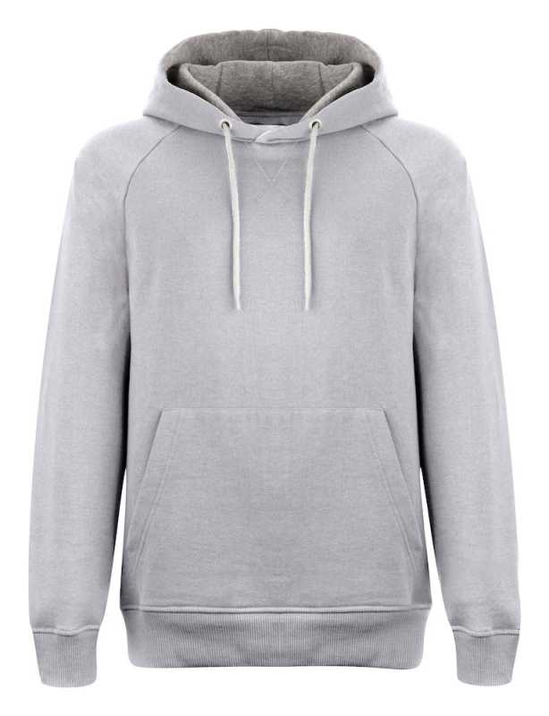 Hoodie with raglan sleeves and half-moon in the neck. Tone on tone drawstrings with rubber bullet point end. Kangaroo pocket on the front. Brushed on the inside. Ribbed ending at sleeves and bottom hem. Oeko-Tex 100, OCS & GRS certified.   Colors: 120 grey melange, 600 navy, 704 moss green, 900 black New version 85% organic cotton, 15% recycled polyester, 300 g/m2 Old version 80% organic cotton, 20% recycled polyester, 300 g/m2 XS-XXL