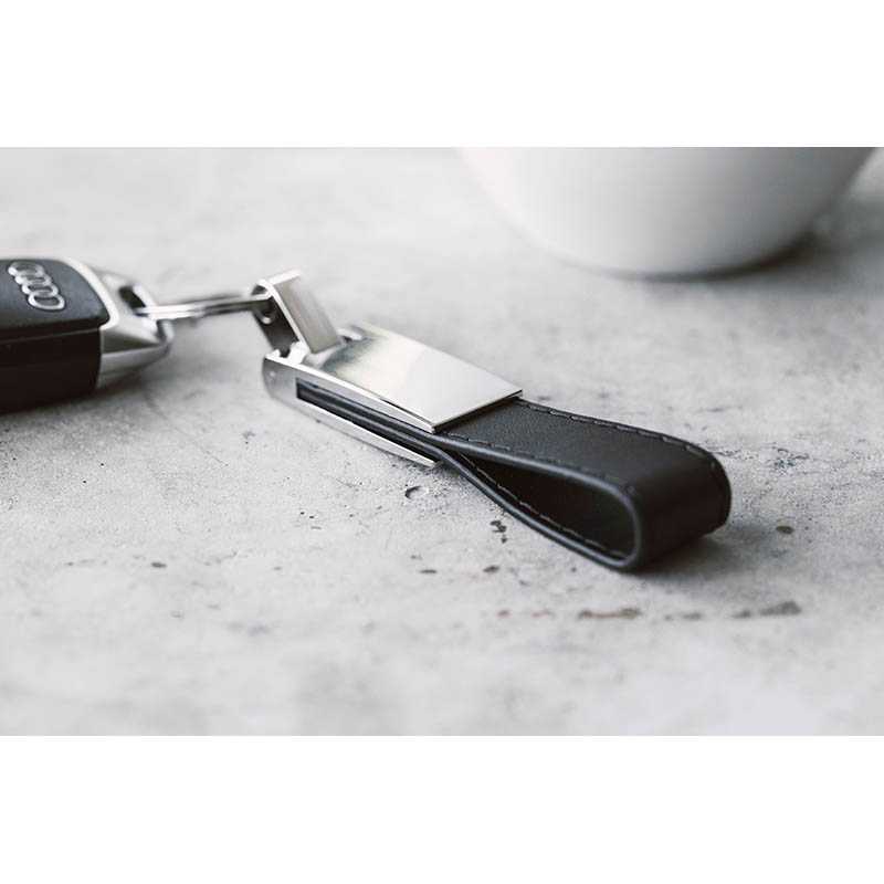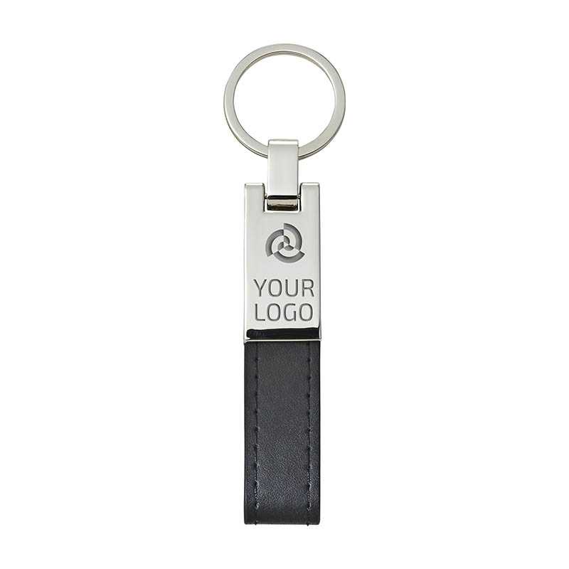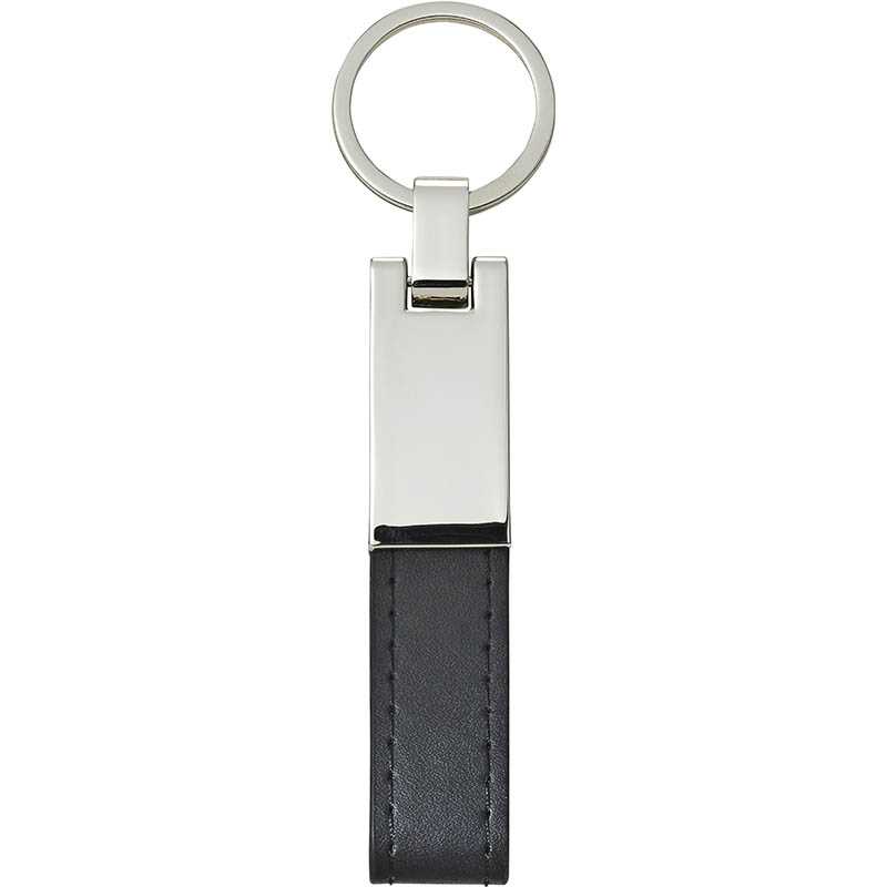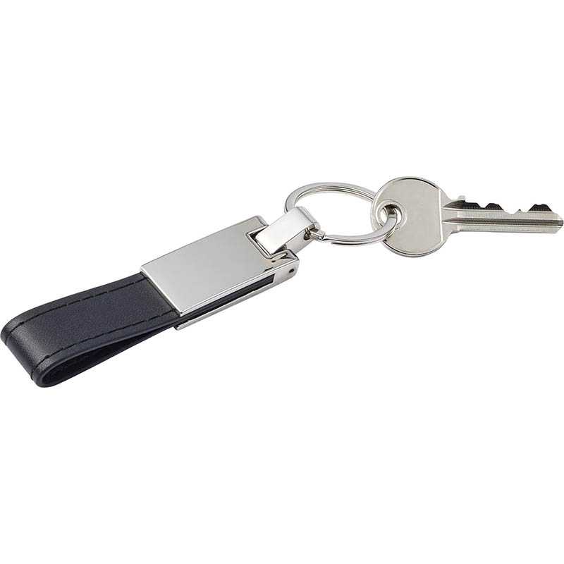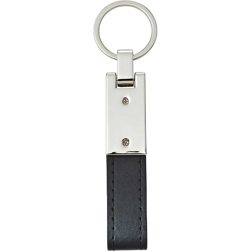 Silver plated steel key holder with PU loop. Packaged in a black gift box.