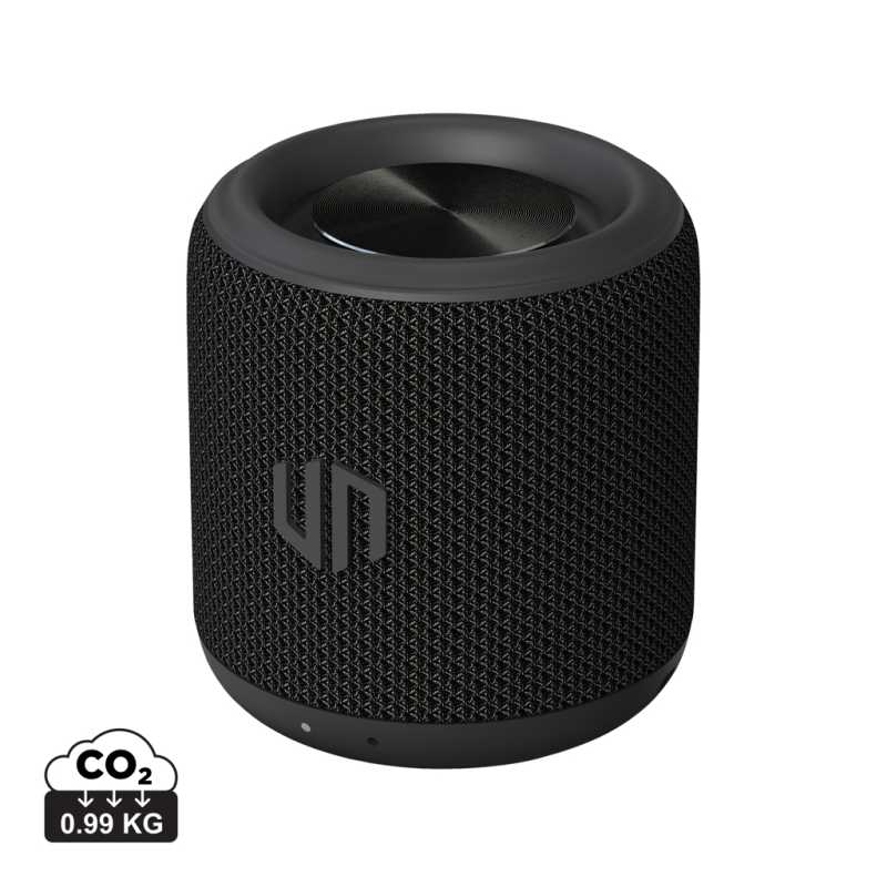 Bezdrôtový reproduktor s výkonom 6 W vyrobený z recyklovaného ABS plastu s RCS certifikáciou. RCS (Recycled Claim Standard) je globálny štandard, ktorý umožňuje overiť použitie recyklovaného materiálu v produkte naprieč celým dodávateľským reťazcom. Celkový podiel recyklátu podľa váhy produktu: 41%. Vodeodolnosť úrovne IPX 4. Batéria s kapacitou 1 200 mAh umožňuje počúvanie po dobu až 6 hodín. BT 5.0 pre kvalitné bezdrôtové spojenie na vzdialenosť až 10m. Mikrofón na telefonovanie. Vrátane nabíjacieho kábla z RCS recyklovaného TPE. Balené v FSC® darčekovej krabičke.