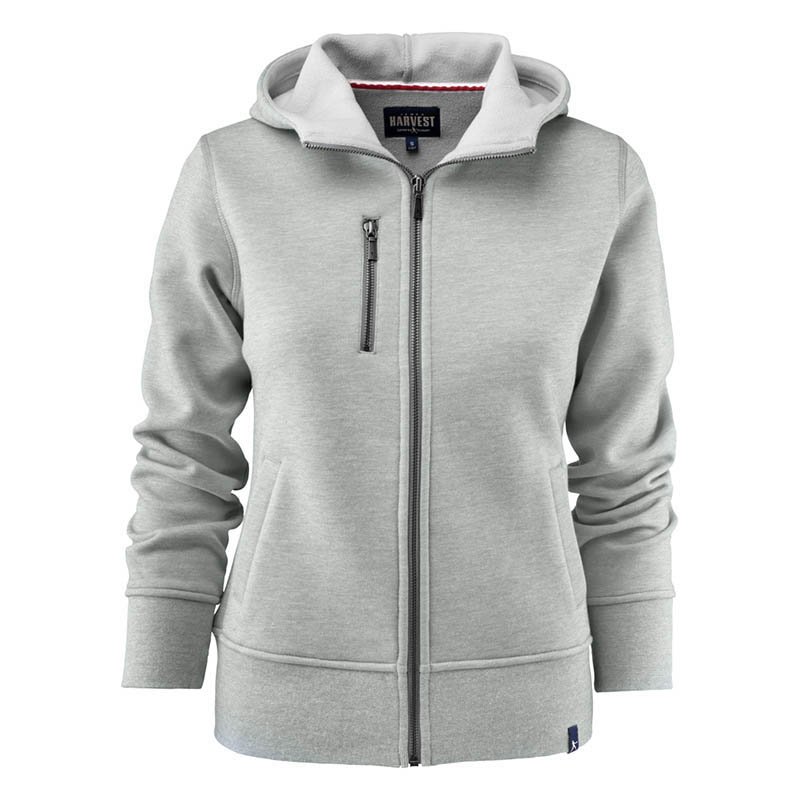 Hooded jacket in double face with fleece on the inside. Metal zip front and right chest pocket. Rib at bottom hem and sleeve cuffs. Material: 100% cotton shellfabric, Inside: 100% polyester inside, 320 g/m2 Colors: 131 grey melange, 406 red melange, 606 dark blue melange, 600 navy, 900 black Size: XS–XXL