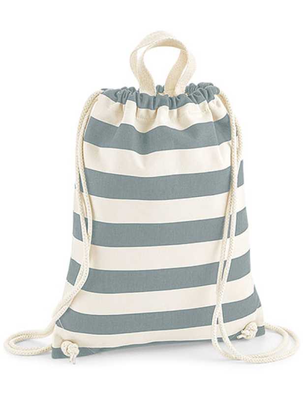 100 % česané bavlněné plátno . Pruhovaný potisk . Dvouúčelová ucha / závěsná poutka . Zavírání robustní stahovací šňůrkou . Dodávka bez obsahu / dekorace . Kapacita: 12 litrů