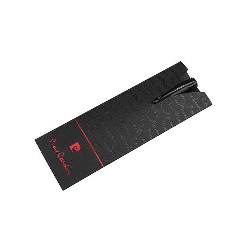 Elegantné guľôčkové pero Pierre Cardin s otočným mechanizmom. Pero má kovové telo v matnom celočiernom prevedení s lesklým klipom a doplnkami. Obsahuje kvalitnú modrú náplň s hrotom 1 mm. Balené v luxusnom puzdre Pierre Cardin, dodávané s certifkátom pravosti. Odporúčaná technológia potlače: gravír. Maximálna veľkosť potlače: 30 × 5 mm (na telo pera). Rozmery: guľôčkové pero 1,1 × 13,5 cm; balenie 5,5 × 15,5 cm. Kartónové množstvo v ks: 60.