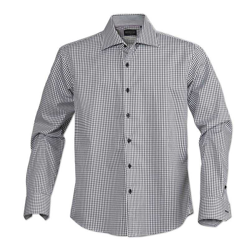 High quality shirt in combed cotton. Shirt in easy care treated fabric and enhanced lining seams, collar and sleeve ends. Body in check pattern with contrast fabric under collar, placket, sleeve and necktape. Modern fit. • 100% Cotton • 513 LIGHT BLUE, 533 BLUE, 903 BLACK • S-XXXL