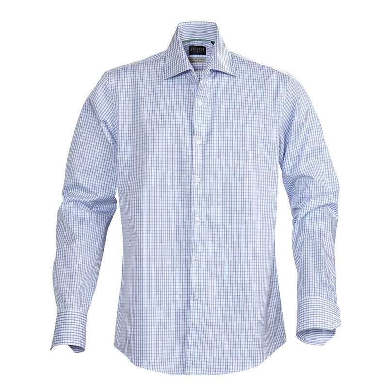 High quality shirt in combed cotton. Shirt in easy care treated fabric and enhanced lining seams, collar and sleeve ends. Body in check pattern with contrast fabric under collar, placket, sleeve and necktape. Modern fit. • 100% Cotton • 513 LIGHT BLUE, 533 BLUE, 903 BLACK • S-XXXL