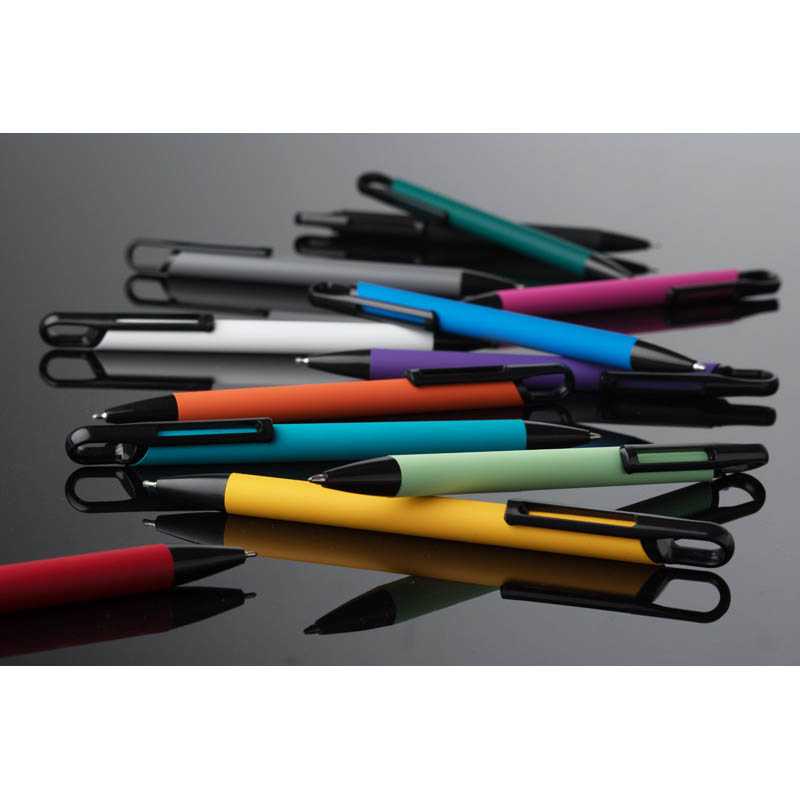 SOFI je pero pro všechny milovníky měkkého pogumovaného povrchu a náplně s měkkým popisem. Tělo vyrobené z hliníku je pokryto pogumovaným povrchem příjemným na dotek. Černé povrchové úpravy dodávají mu moderní vzhled. Výhodou pera je pologelová náplň o tloušťce 0,7 mm. Modrá náplň.