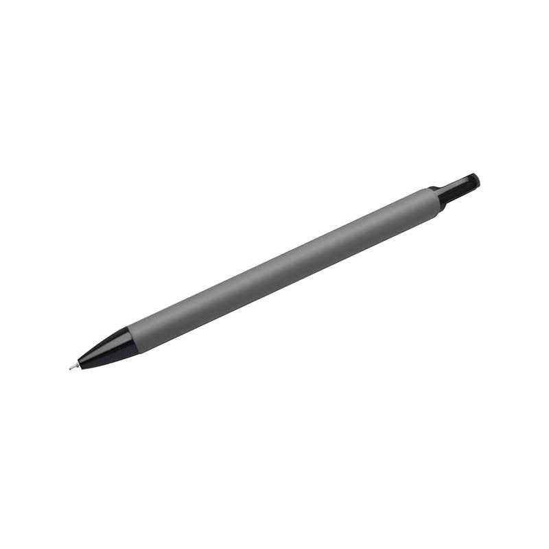 Hliníkové guľôčkové pero s pogumovanou úpravou a modrou náplňou. Špeciálny povrch na zrkadlové gravírovanie.