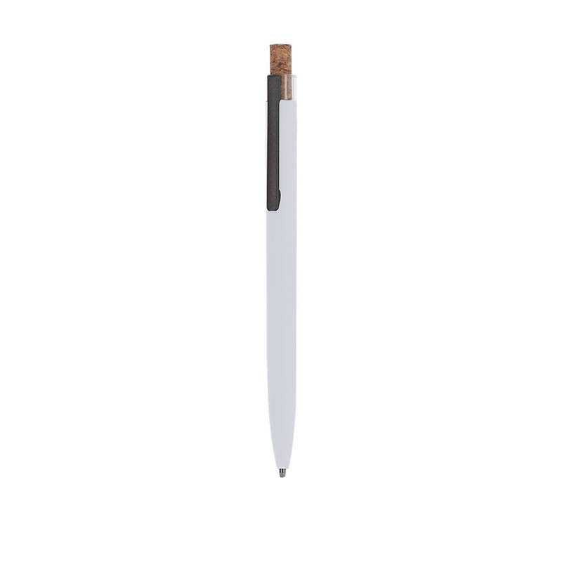 Trvanlivé kuličkové pero se stiskacím mechanismem a vyměnitelnou náplní vyrobené ze 100% PLA (kukuřičný plast), který snižuje množství použitého plastu. Obsahuje náplň s délkou psaní přibližně 2000 metrů. Pero se dodává s modrou náplní. Lepenkový obal na pero.