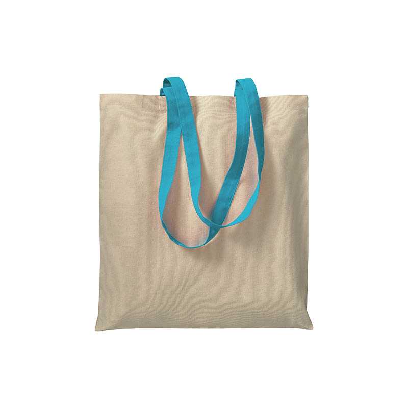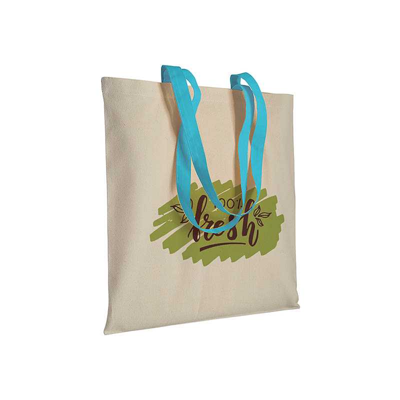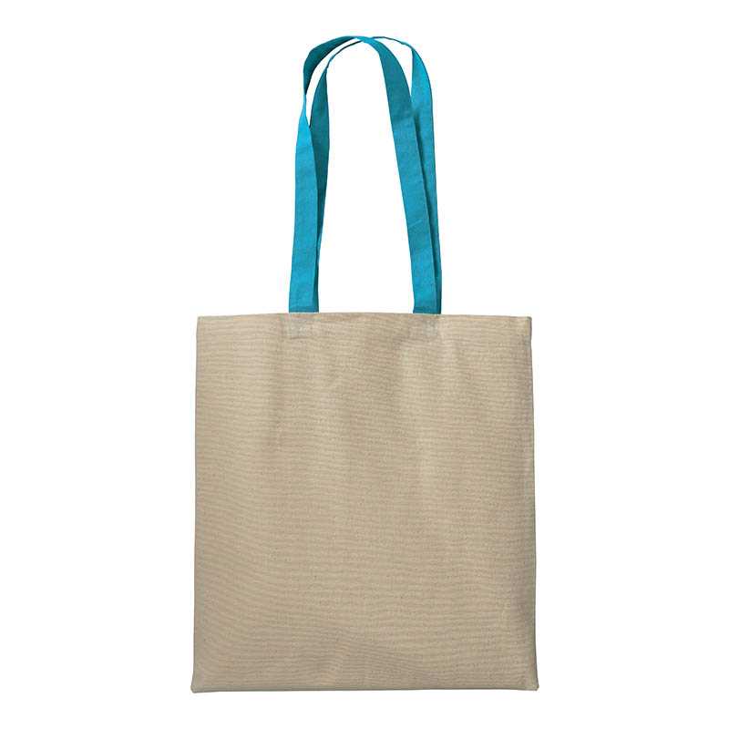 220 g/m2 natural cotton shopping bag with coloured long handles