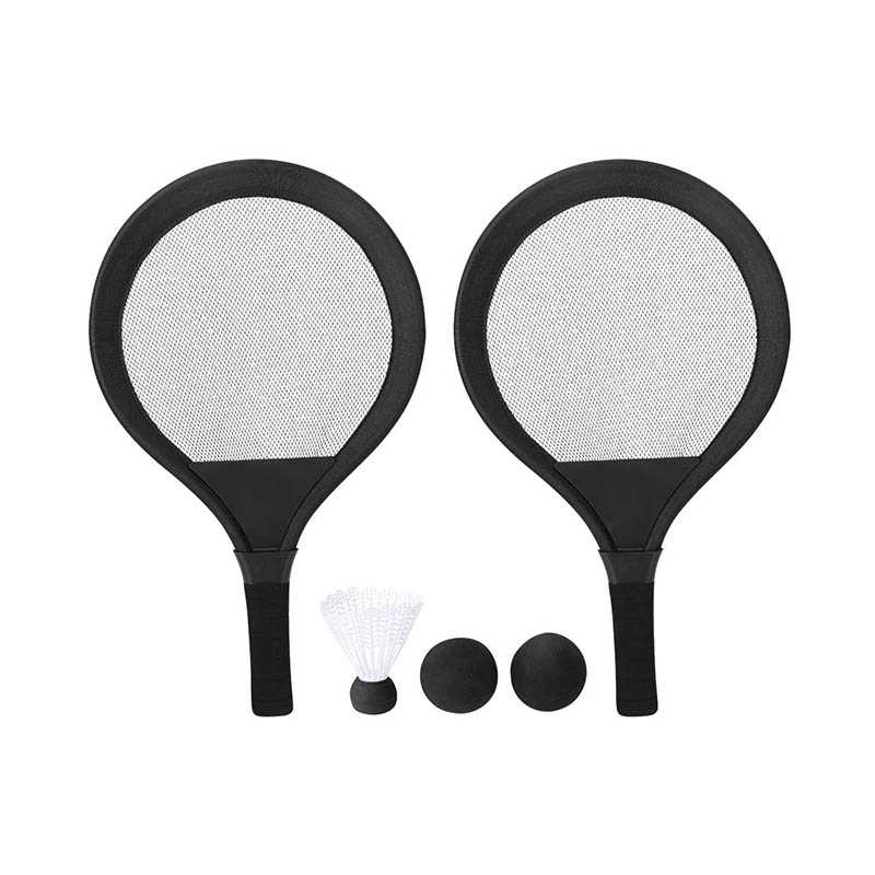 NOVINKA 2025. Game set with rackets. Includes: - 2 rackets with ergonomic handle and padded edges, designed for a comfortable and secure grip during play. - 2 matching balls made of EVA material. - 1 shuttlecock. Ideal for enjoying outdoors, whether at the beach, park, or garden.