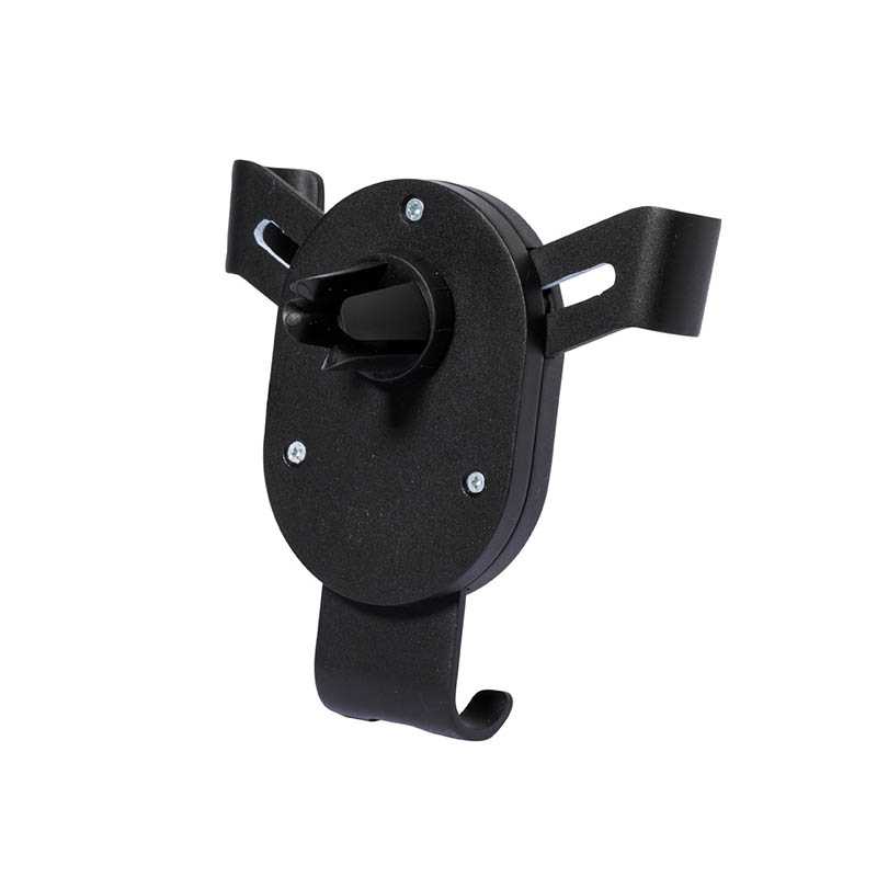 ABS smart phone holder for in the car. Attaches to the air vent. Place the metal plate on the back of the phone (adhesive) and the phone will be held in place by a magnet.