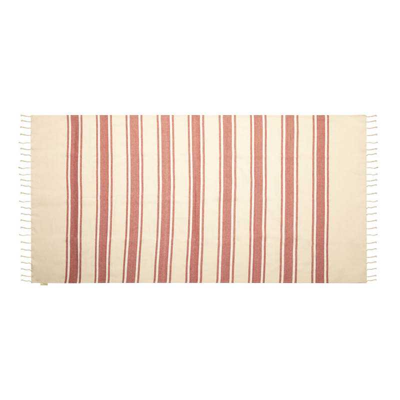 NOVINKA 2025. Large beach/sauna towel SUN & STEAM: large towel with white stripes and fringes, in colour-matching bag with drawstring