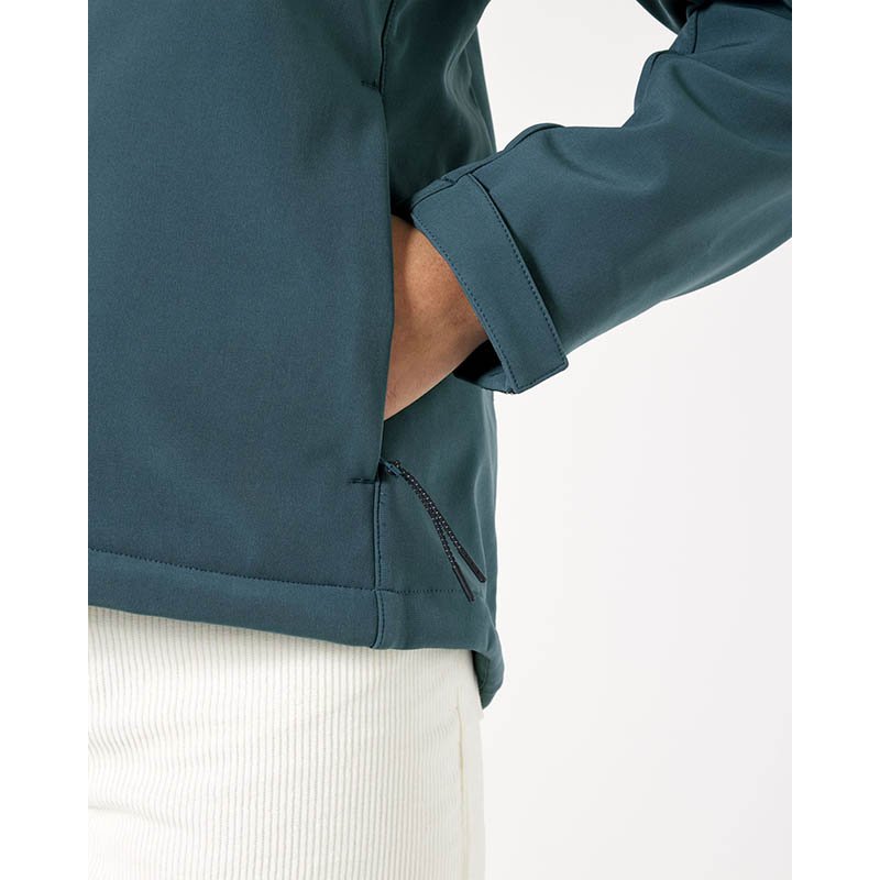 High collar with Set-in sleeve Bottom hem with adjustable plastic stopper and elastic cord Reverse nylon zip at center front Zipped outside welt pockets with reflective elastic puller Fully bonded 3 layer fabric with recycled TPU membrane and inside f