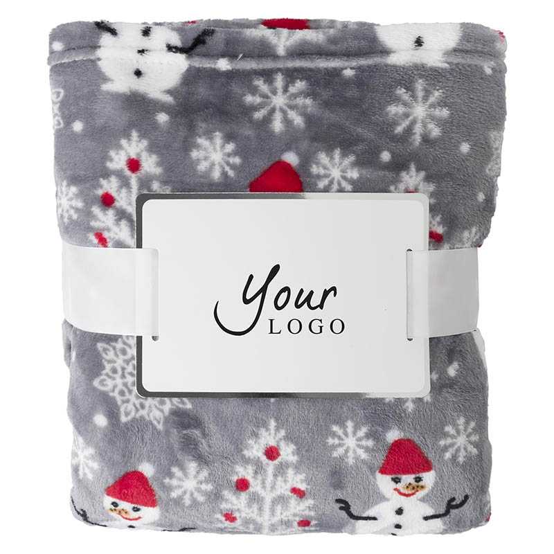 Polyester flannel fleece (260 gr/m2) blanket. The blanket is folded and tied with a ribbon.