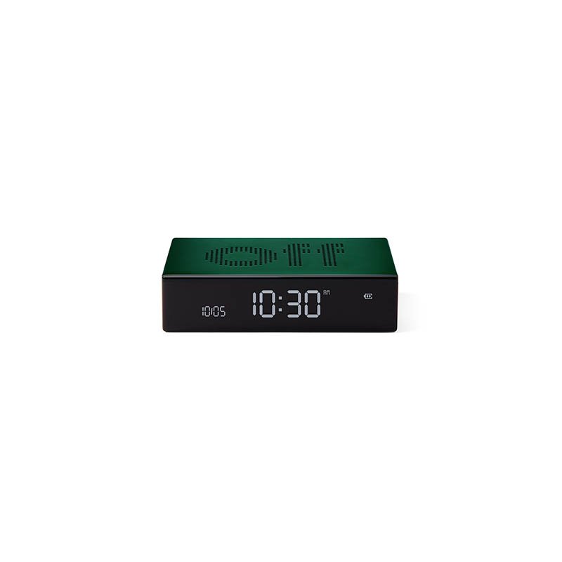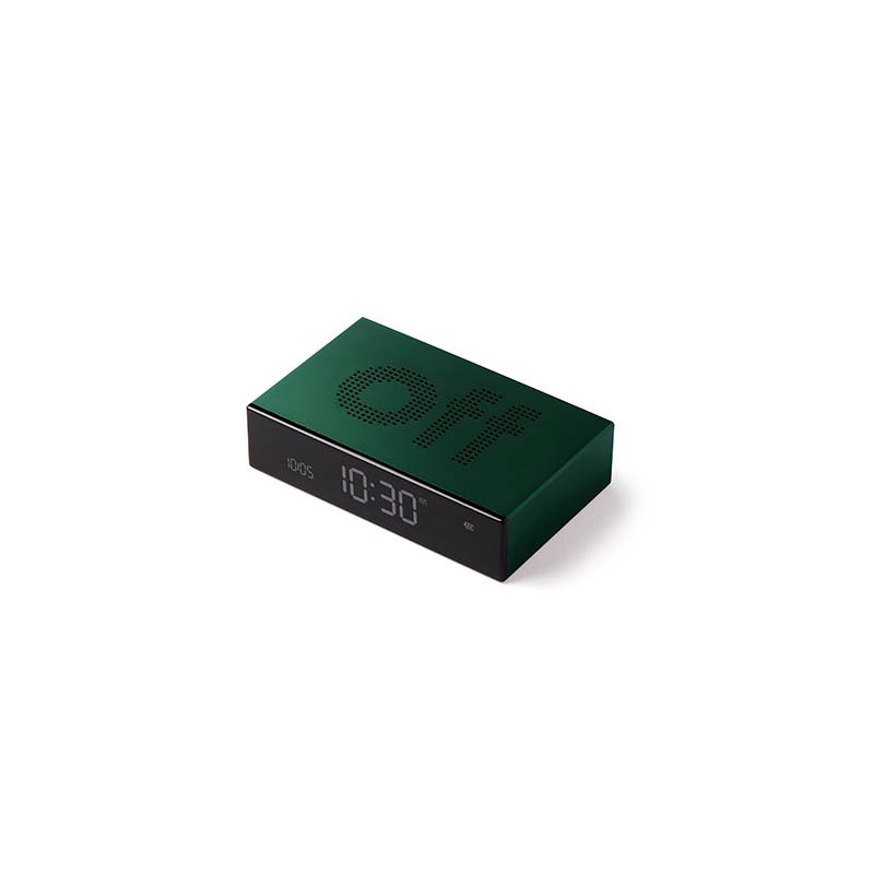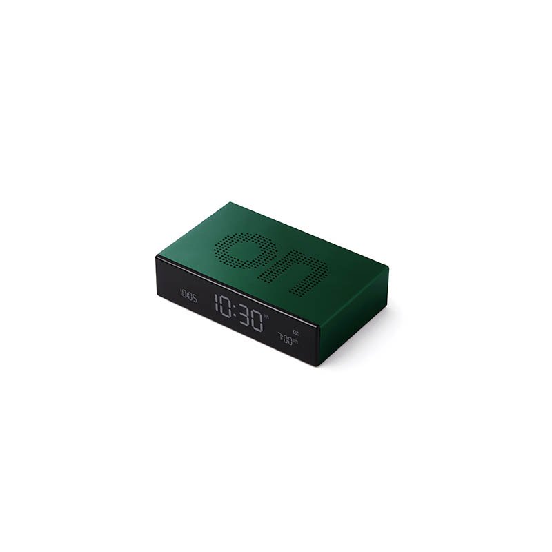 Reversible LCD alarm clock - ON/OFF faces - Pure VA LCD display Sound sensor to wake-up screen - Touch control for snooze and dimmer - Travel lock system - Battery life: Up to 3 monthsRechargeable on USB-C port (cable included)Material: Aluminium/PCSuggested branding: Pad printing - laser