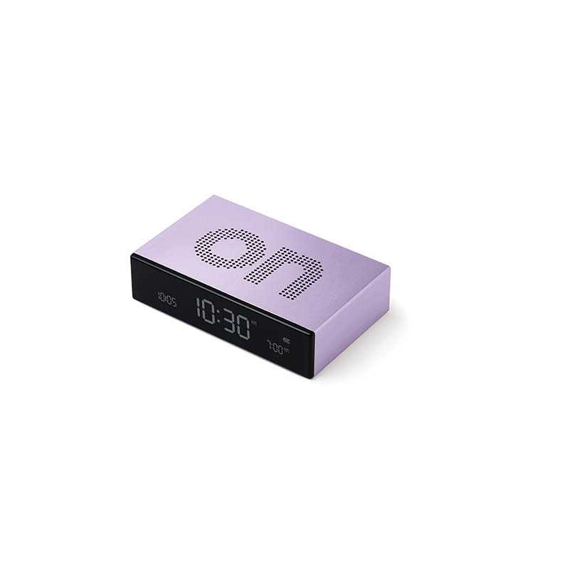 Reversible LCD alarm clock - ON/OFF faces - Pure VA LCD display Sound sensor to wake-up screen - Touch control for snooze and dimmer - Travel lock system - Battery life: Up to 3 monthsRechargeable on USB-C port (cable included)Material: Aluminium/PCSuggested branding: Pad printing - laser