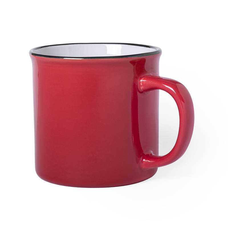 NOVINKA 2025. 300ml ceramic mug with vintage design. In combination with outside in a wide range of tones and inside in white with black piping. Presented in an individual box.Instruction manual available in Spanish and English.