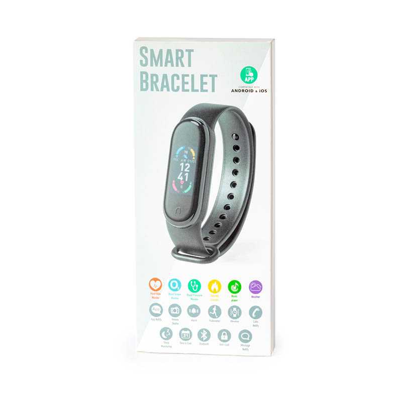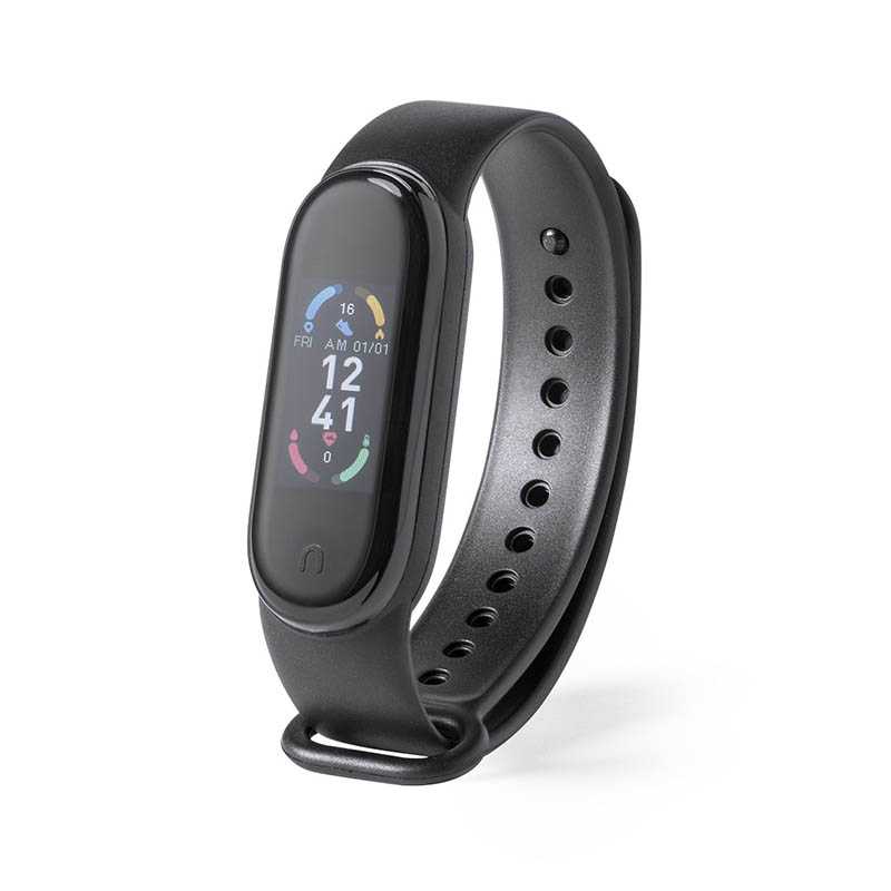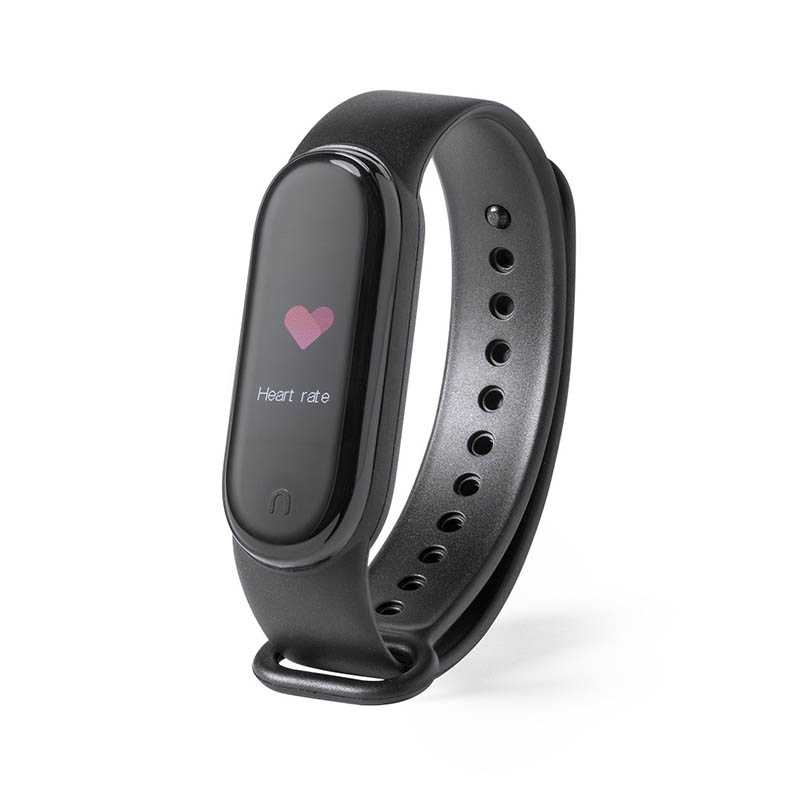 NOVINKA 2025. Multifunction smart bracelet with sporty design, lithium battery and Bluetooth® 4.0 connection, rechargeable via USB connection -cable included-. Its TPU body and integrated 0.96-inch TFT colour display make it the perfect gadget for all kinds of sports, leisure and everyday activities. APP available for iOS and Android. With heart rate, blood pressure monitoring and many other functions. Presented in an attractive design box.