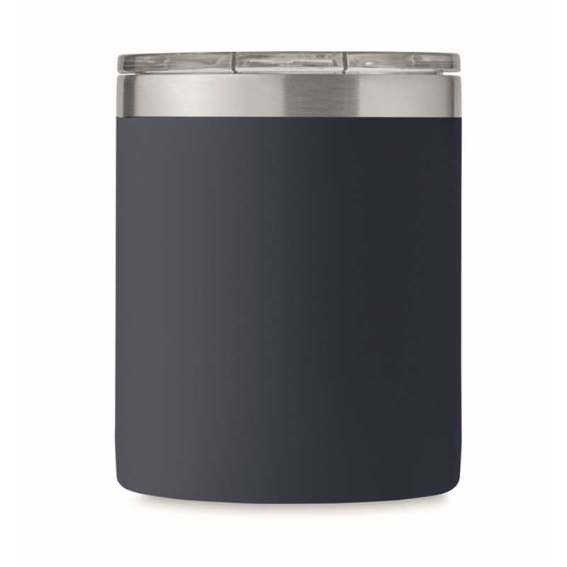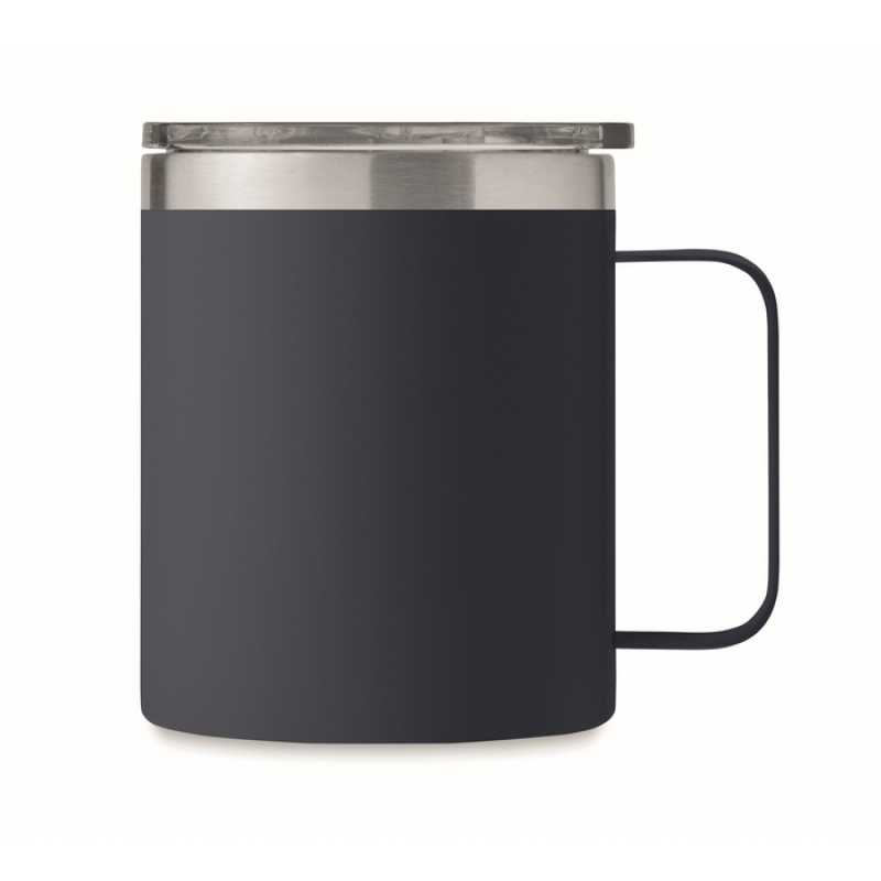 Dvoustěnný hrnek z recyklované nerezové oceli (90 % recyklované nerezové oceli a 10 % nerezové oceli) s posuvným zavíráním. Objem: 300 ml.