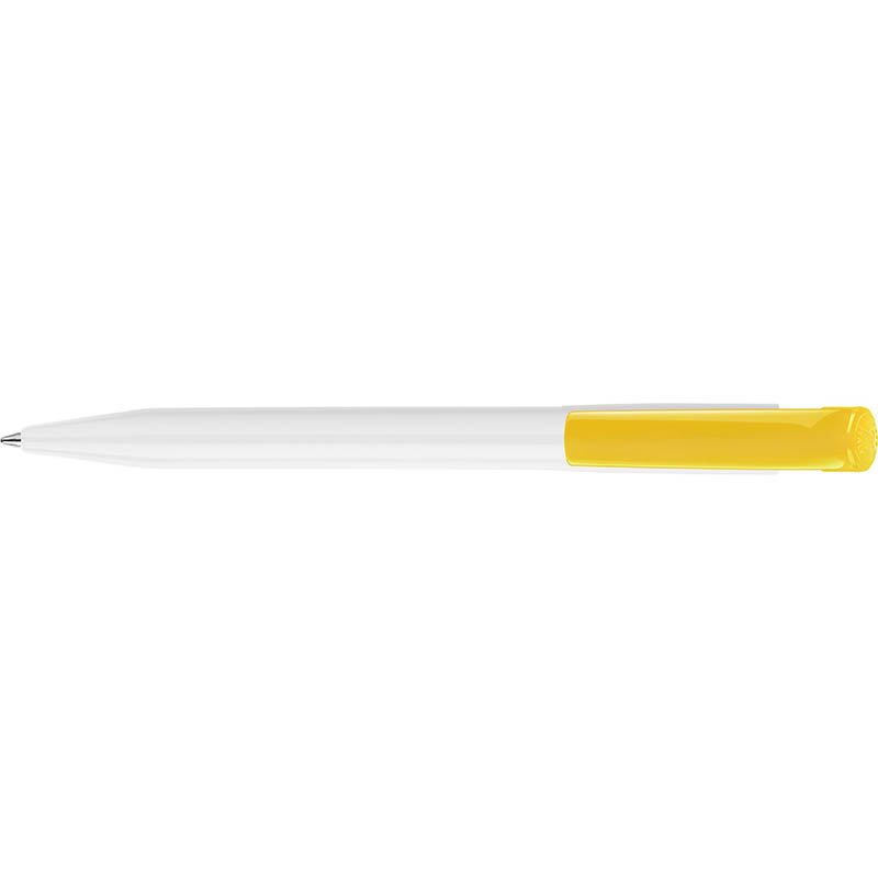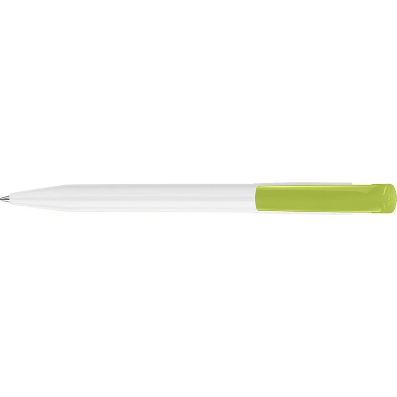 Plastové guľôčkové pero s uzamykateľným uzáverom, plastovým klipom a modrým atramentom.