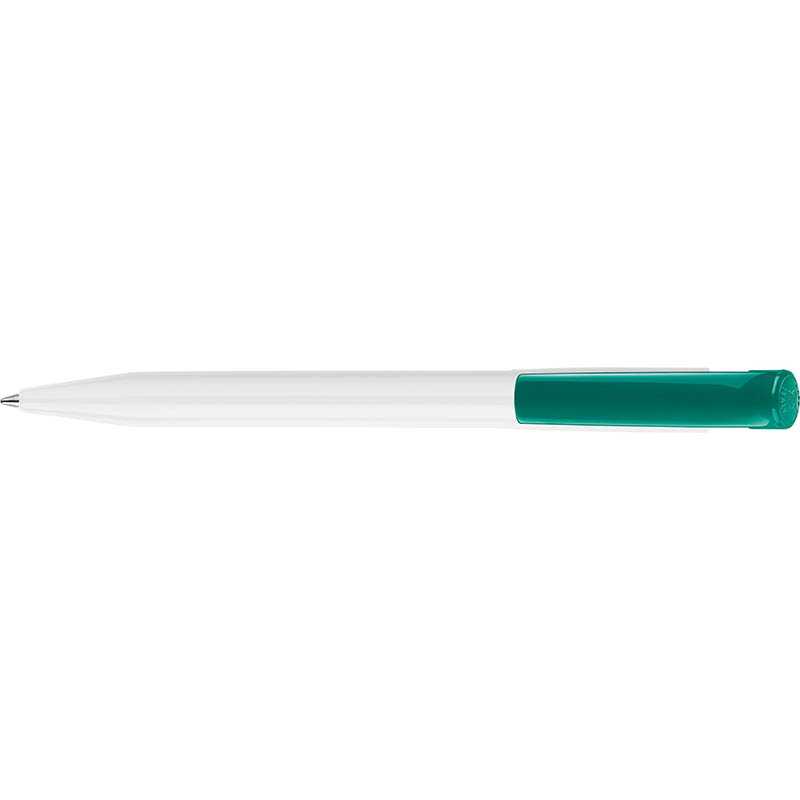 Blue ink ballpoint pen, made almost entirely from recycled PET bottles.