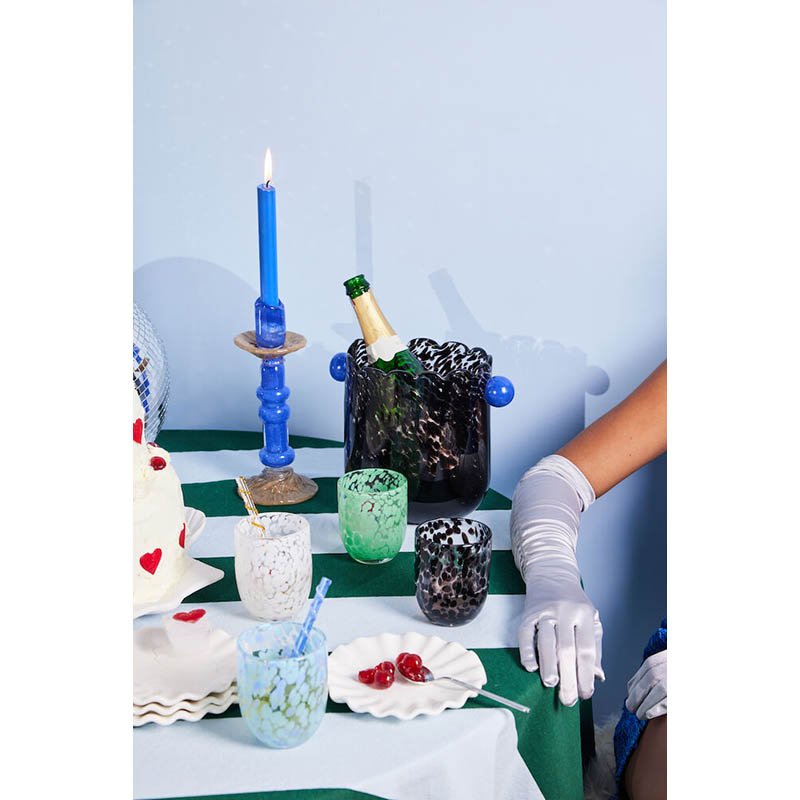 Extravagant, pompous, and absolutely wonderful perfectly describe the Lara candlesticks in handmade glass. No candlestick speaks for itself as well as Lara, taking its rightful place in every home. The Lara candlestick is inspired by the columns that adorn many of the fantastic Italian houses, majestic and often with rounded forms. The base and top resemble a flower, catching the dripping wax like a built-in cuff holder. Available in different heights and colors, they can be combined for maximum effect but stand out just as well on their own. The material is glass, reminiscent of the glass art of the past. Available in three sizes and three color combinations. Handmade. Variations in color and texture may occur. Designed by Byon Studio. Delivered in a Byon box. Material: Mouth-blown glass Weight: 900 g Width: 120 mm; Height: 260 mm; Length: 120 mm Color: niebieski Technique Comment: Handmade, variations in color and texture may occur.
