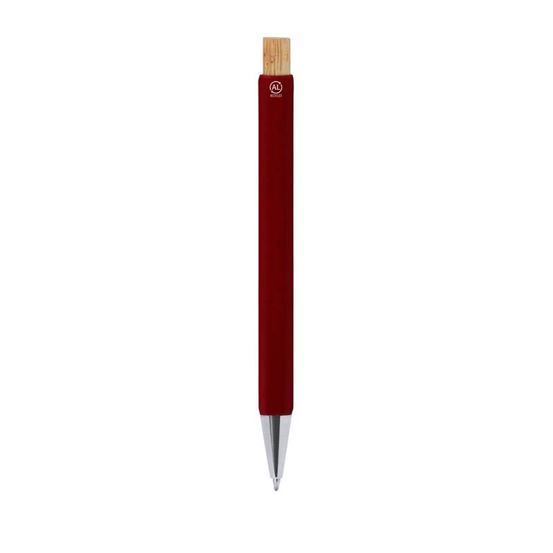 Trvanlivé kuličkové pero se stiskacím mechanismem a vyměnitelnou náplní vyrobené ze 100% PLA (kukuřičný plast), který snižuje množství použitého plastu. Obsahuje náplň s délkou psaní přibližně 2000 metrů. Pero se dodává s modrou náplní. Lepenkový obal na pero.