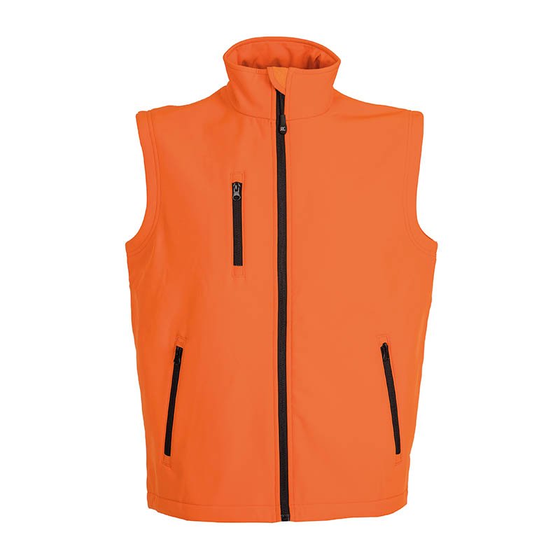 Soft shell waistcoat 2 layer waterproof - 96% polyester – 4% elastan - Waterproof 6000 mm/H2O - Reflective printing on shoulders - Hood with coulisse - One chest pocket with zip - Two pockets with zip - Elasticized fabric on armhole - Elasticized fabric on bottom