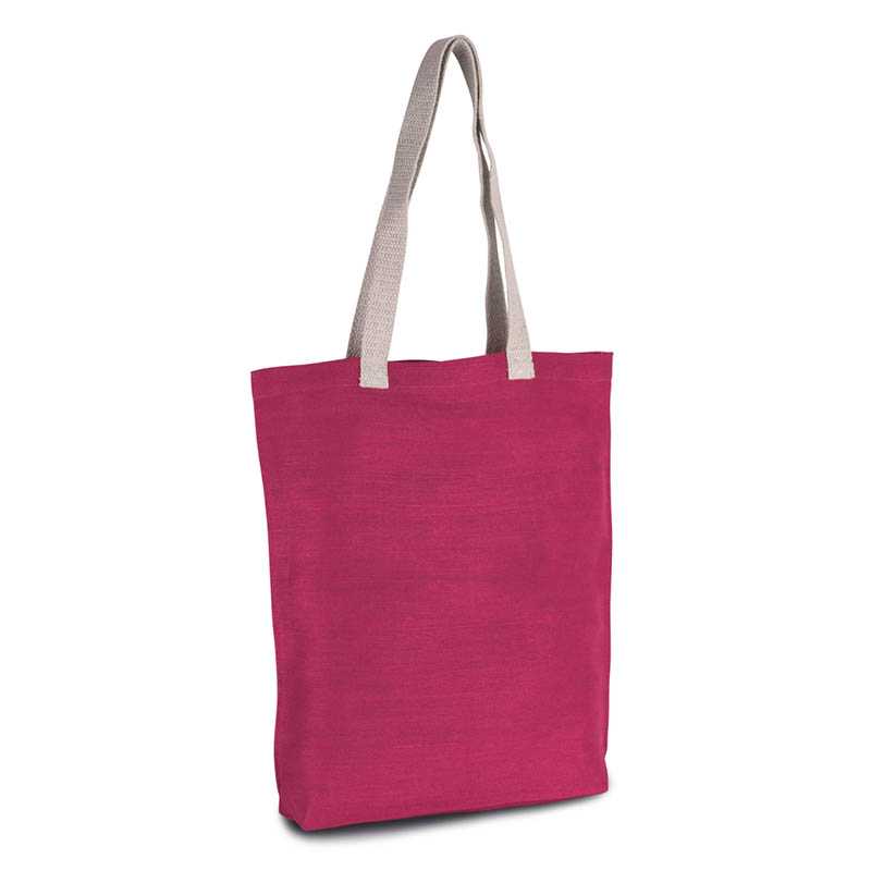 Jutová nákupná taška s certifikátom Oeko-Tex® STANDARD 100 s dvoma držadlami na prenášanie a praktickým bavlneným predným vreckom so suchým zipsom.