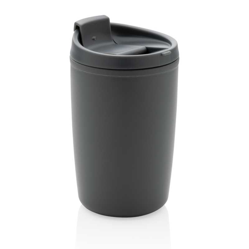 Nepriepustný termohrnček s odklápacím viečkom pre ľahké pitie. Vyrobené z GRS recyklovaného PP plastu. GRS (global recycled standard) zaručuje kompletne certifikovaný dodávateľský reťazec, čím je možné garantovať skutočné obsiahnutie recyklátu. Podiel použitého recyklovaného materiálu vzhľadom na celkovú váhu produktu: 97%. Iba pre ručné umývanie. Bez BPA. Objem: 300 ml. Balené v FSC kraftovej krabičke.