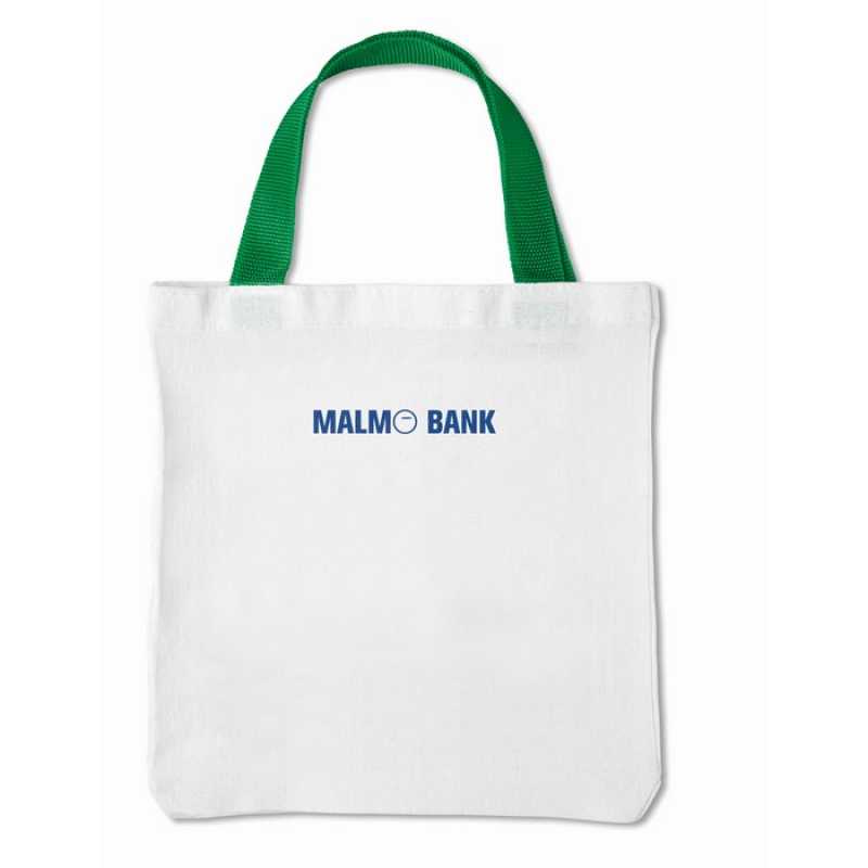 Skládací nákupní taška ze 105 gr/m2 bavlny s krátkými uchy a skládáním do kapsičky.