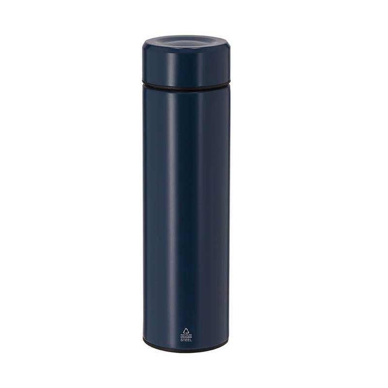 Dvouplášťová vakuová láhev z nerezu. Má zabudovaný dotykový LED teploměr na víčku a vnitřní čajový louhovač. Včetně 1 baterie CR2032 baterii. Těsnící. Objem 450 ml. Neteče.