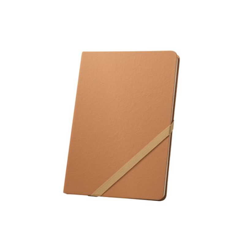 NOVINKA 2025. Zošit formátu A5 s pevným obalom z vodeodolný kraftového papiera a zaoblenými rohmi. So 160 linajkovanými stranami (70 g/m2) na papieri slonovinovej farby vyrobenom z materiálu s certifikátom FSC™ a ďalších kontrolovaných materiálov, separačnou páskou a gumičkou na diagonále na zatvorenie zošita. 147 x 210 mm