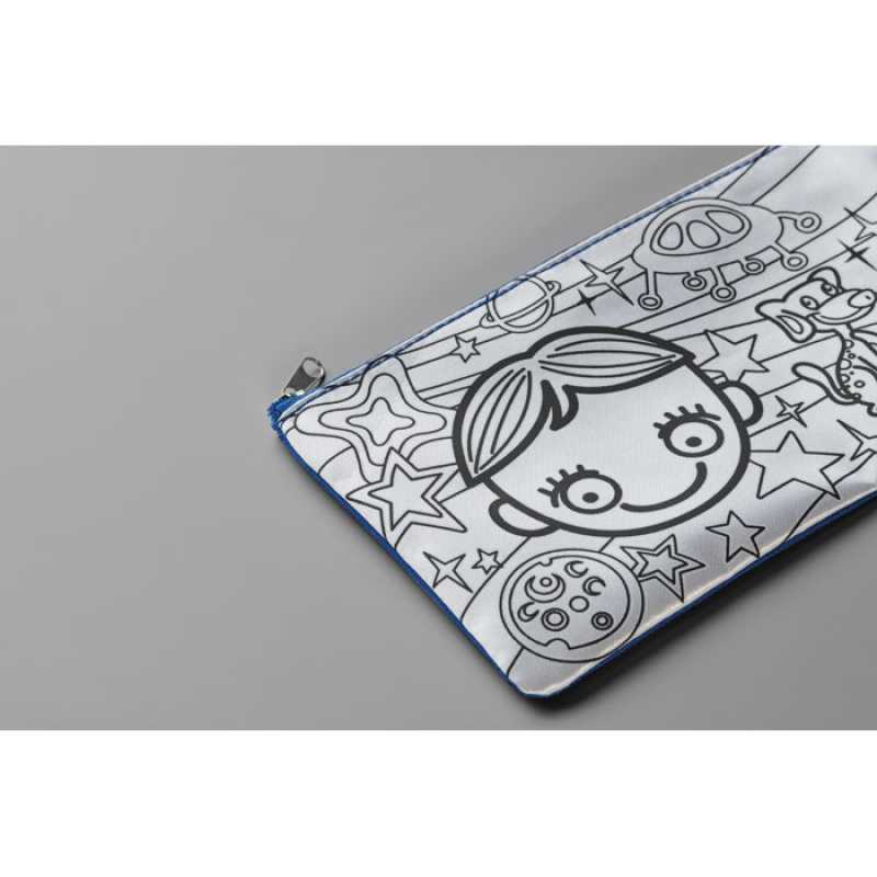 NOVINKA 2025. Penál z polyesteru 600D k vybarvení. V sadě jsou 4 fixy.