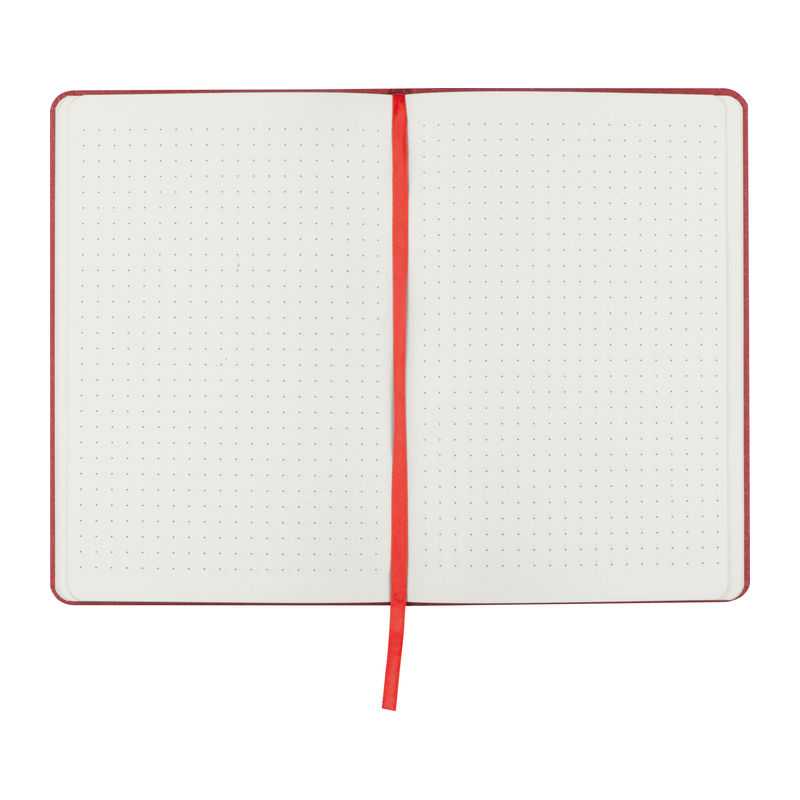 Poznámkový blok A5 s obalom z recyklovaného kartónu, záložkou, 160 bodkovanými stranami a zatváraním na gumičku.