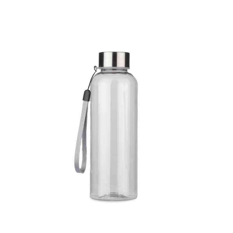 NOVINKA 2025. RPET bottle with a capacity of 830 ml. Stainless steel safety screw cap and original silicone strap for easy transport. Available in a selection of translucent colours. BPA free and presented in an attractive kraft design box. The RPET material is made from recycled plastic to encourage the reuse of plastic waste and help the sustainability of the planet.