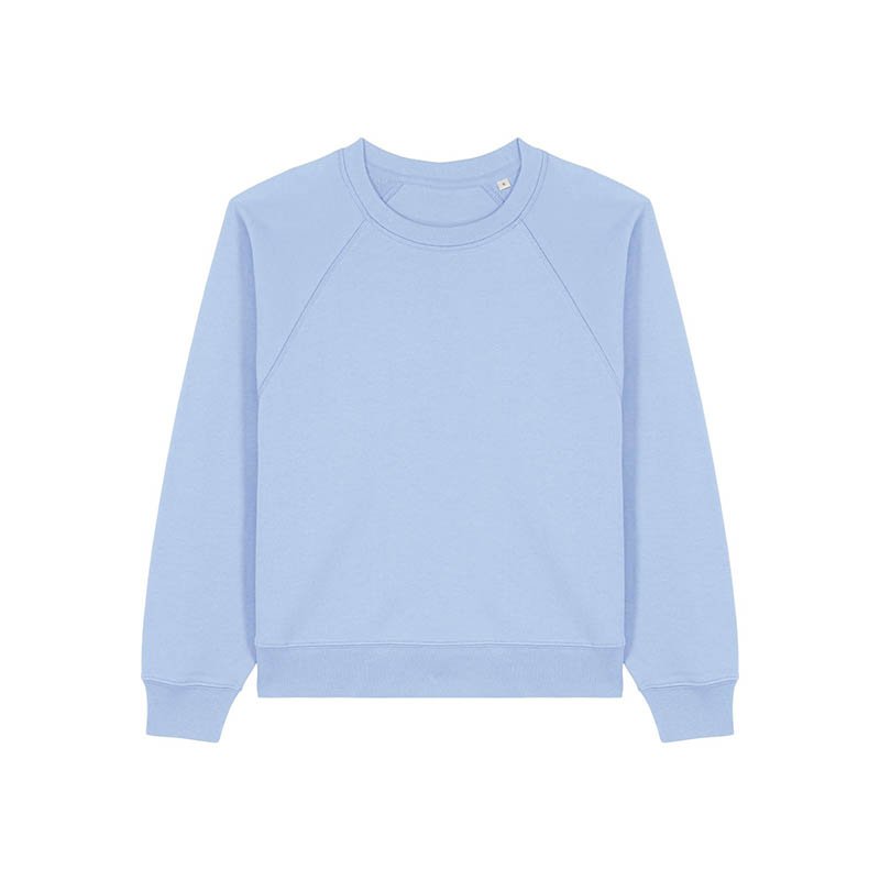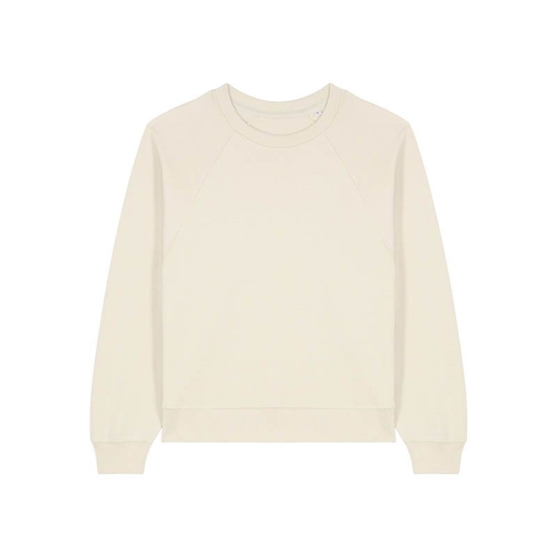 Sweatshirt with round neck and brushed lining. 2x2 ribbing on the collar edge, end of sleeves and bottom hem. Decorative seams in overlock knit set in a tone-in-tone feature. Ladies fit.
