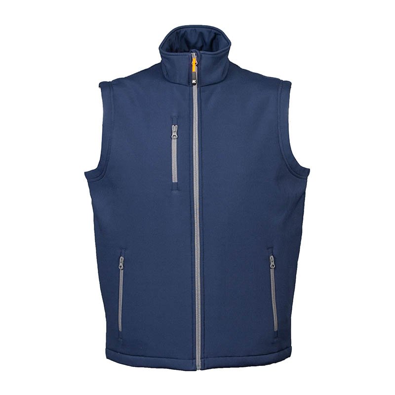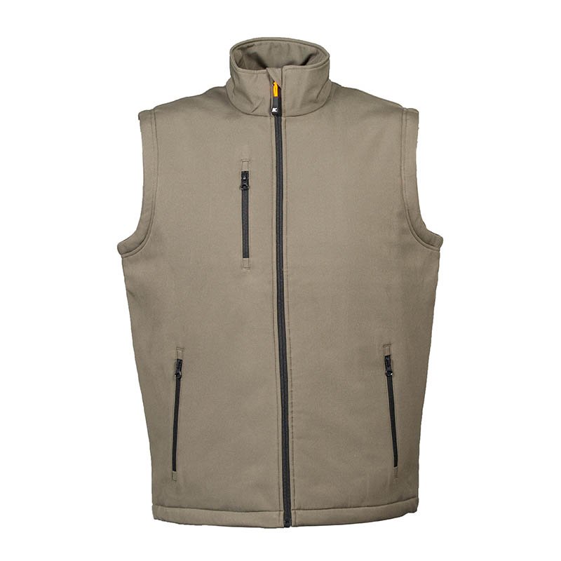 Softshell padded vest 2 layers water resistance - 96% polyester – 4% elastan - Waterproof 6000mm/H2O - Polyester lining - Polyester padding - YKK zippers - One chest pocket with zip - Two pockets with zip - Inner wallet pocket - Drawstring at the bottom