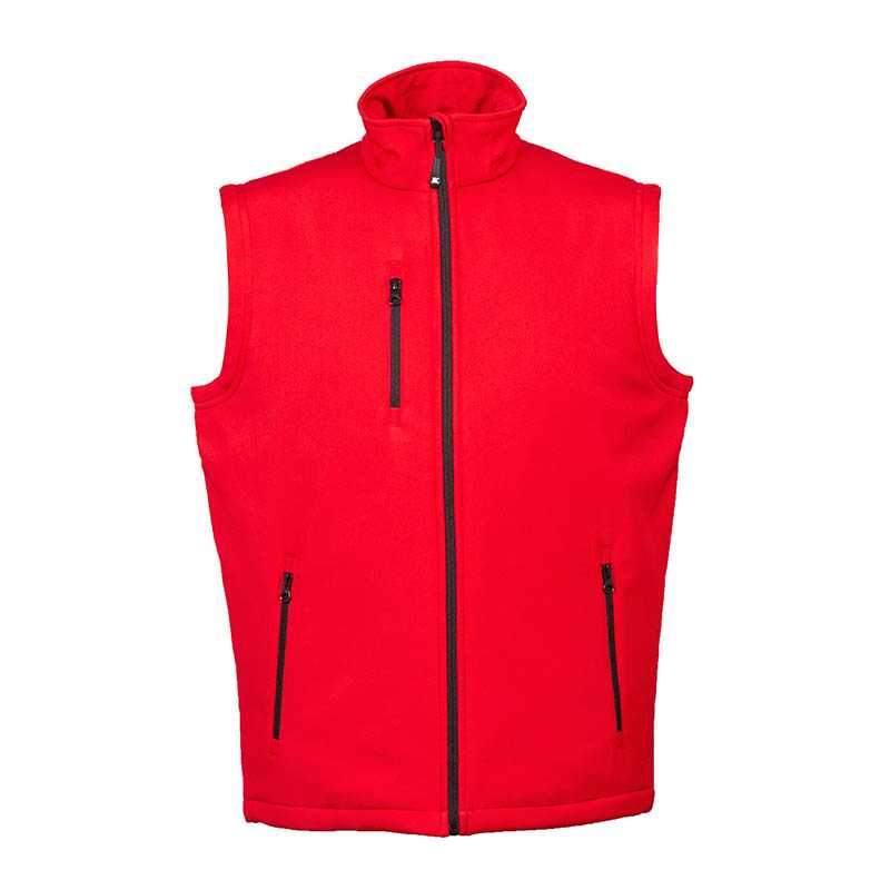 Softshell vest based on same as the jacket in bounded fabric with stretch capabilities. Two coloured zipper at front and pockets. Possible to add zip pullers in other colours matching the company logo. // 96% POLYESTER/ 4% SPANDEX, BRUSHED INSIDE // 400 RED, 600 NAVY, 632 OCEAN BLUE, 728 FRESH GREEN, 900 BLACK, 935 STEEL GREY, 100 WHITE S - 5XL