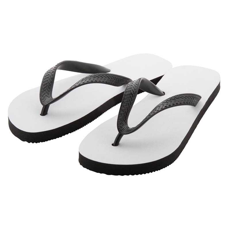 Plážové žabky s podrážkou a pásikom z prírodného kaučuku. Možno potlačiť celý horný diel pomocou sublimácie. Hrúbka: 10 mm. Cena zahŕňa sublimačnú tlač, nezahŕňa tlačovú prípravu. Min. mn.: 50 ks.