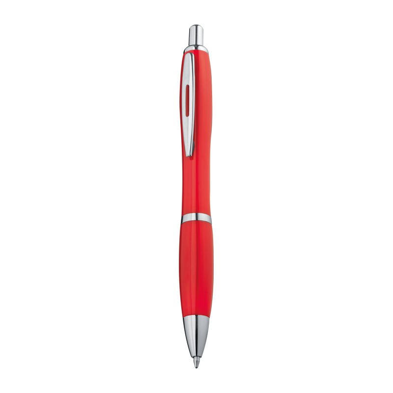 Plastové guľôčkové pero s gumovým úchopom v rovnakej farbe, s modrou náplňou.