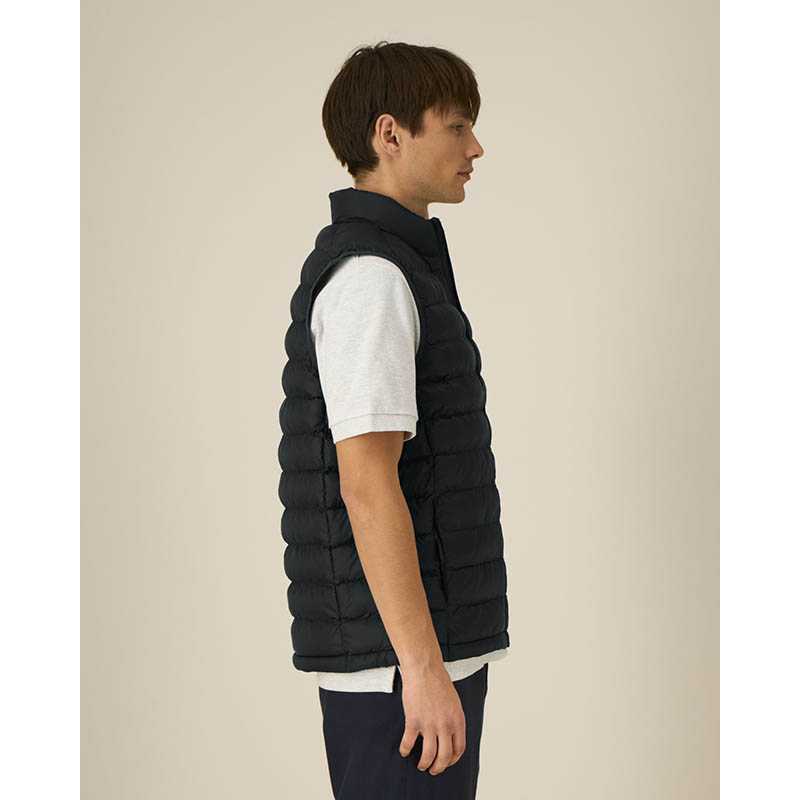 NOVINKA 2025. Sleeveless High collar Reverse nylon zip at center front Zipped welt pockets with extra grosgrain puller Elastic tape binding at armhole Fully quilted Side panels for better shape Inside seams with binding finish