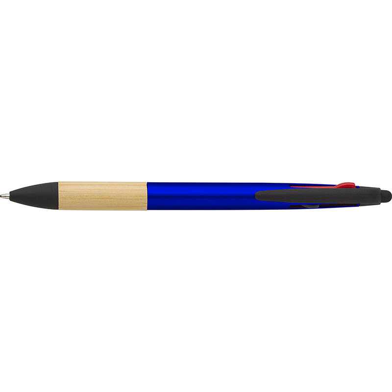 ABS 3 colour ink ballpen with bamboo grip and stylus tip. Ink colours: red, blue, black.