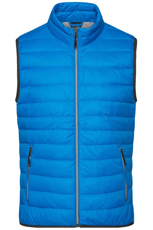 This padded vest for men offers great heat insulation despite its light weight. With handy "stow-away" function: The vest folds down into its own inside pocket, saving space on outdoor a