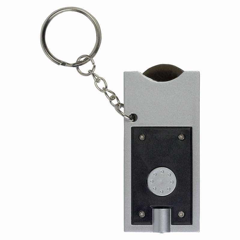 Plastic key ring with shopping trolley token and light