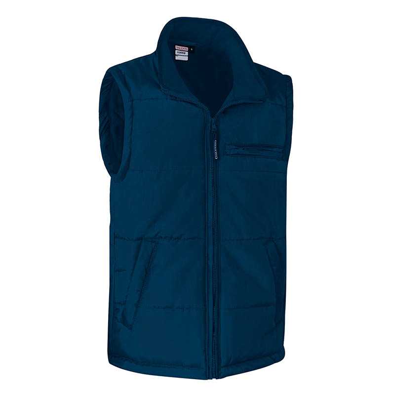 Multi-Pocket 100% Cotton Work Vest. Made of 100% cotton twill outer fabric that provides durability, strength, breathability and a comfortable feel, smooth inner lining and inner quilting for ensuring excellent thermal insulation. Stand-up collar with full-zip flap and snap button front closure, which provides warmth and comfort.Adjustable waist with side snap button fastening for a better fit, a tailpiece that covers the lumbar zone for added comfort and also provides a large printing area.Six velcro flap front pockets, two pen holders and an inner velcro pocket for a secure and convenient storage. Includes an inside back zip for easy marking with different methods: screen printing, embroidery, transfer printing, badges, shields, vinyl application. Ideal as workwear and uniforms.