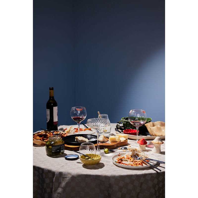 The Opacity wine glass has been designed for a perfect experience - on the table, in the hand, and while drinking. It is a thin and delicate wine glass that strikes a perfect balance between luxury and boldness. The glass features a beautiful striped pattern in clear glass. Designed by Byon Studio. Delivered in a 2-pack in a Byon box. Material: glass Weight: 230 g Width: 100 mm; Height: 190 mm; Length: 100 mm; 47 cl Color: clear