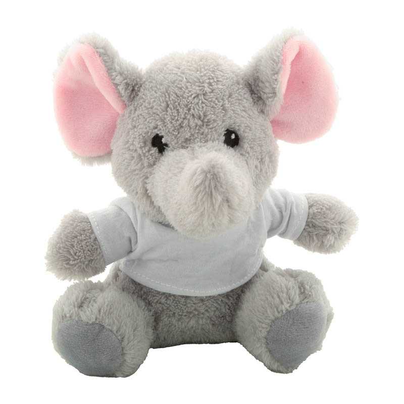 Plyšový slon RPET s tričkom z RPET polyesteru na potklač. Objednávky bez potlače sú dodávané s tričkom zvlášť.
