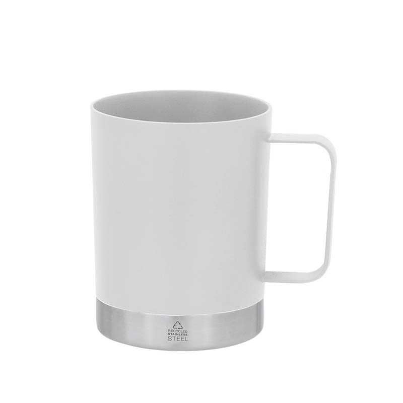 NOVINKA 2025. Recycled PP mug, combined with a base of recycled stainless steel. With a capacity of 400 ml.With Food Grade certification, ensuring safety when food comes into contact with the material used to manufacture the product. With Recycled Stainless Steel designation.Recycled PP is highly recyclable and strong plastic, suitable for many applications.Steel is one of the most demanded materials and can be found almost everywhere, from daily use products to large constructions. With countless properties, including durability and a high degree of reusability, making it a highly valued alternative in sustainability solutions. When properly treated, it allows for obtaining new resources of infinite use.