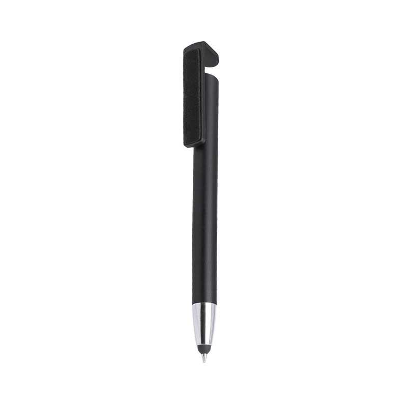 NOVINKA 2025. Multifunction ball pen with push-up mechanism in bold colors and dual-function clip especially designed to function as a holder for mobile devices and also as a screen cleaner. With body in metallic finish, especially designed for pad printing and black ink.